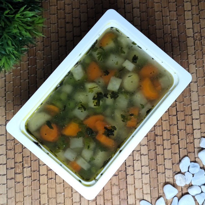 Sárgarépa, fehérrépa, zeller, zöldborsó, tárkonnyal magyarosan.